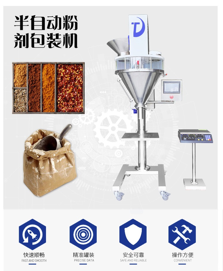 ![]() 半自动粉剂包装机应用:半自动粉剂包装机适用于农药、兽药、预混料、添加剂、奶粉、淀粉、调味品、酶制剂、饲料等粉剂状的定量包装。